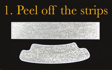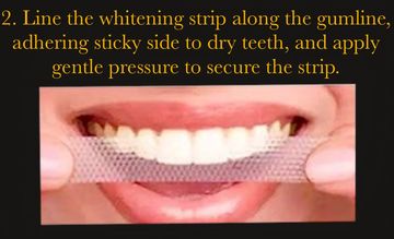 Apply gel side against your teeth, lining up with the edge of your gum. Apply gentle pressure to mold the strip securely to your teeth.